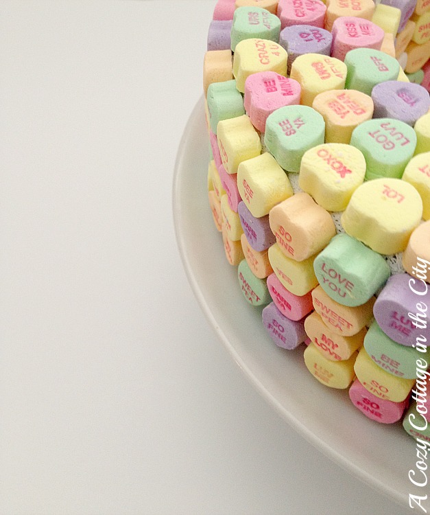 Then added some blooms, and voila ~ we now have a decorated "Conversation Heart" cake that is both festive and fun!